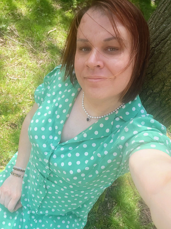 Oh, if you can find something with a jade green colour to it, take a photo with it near your breasts and face.